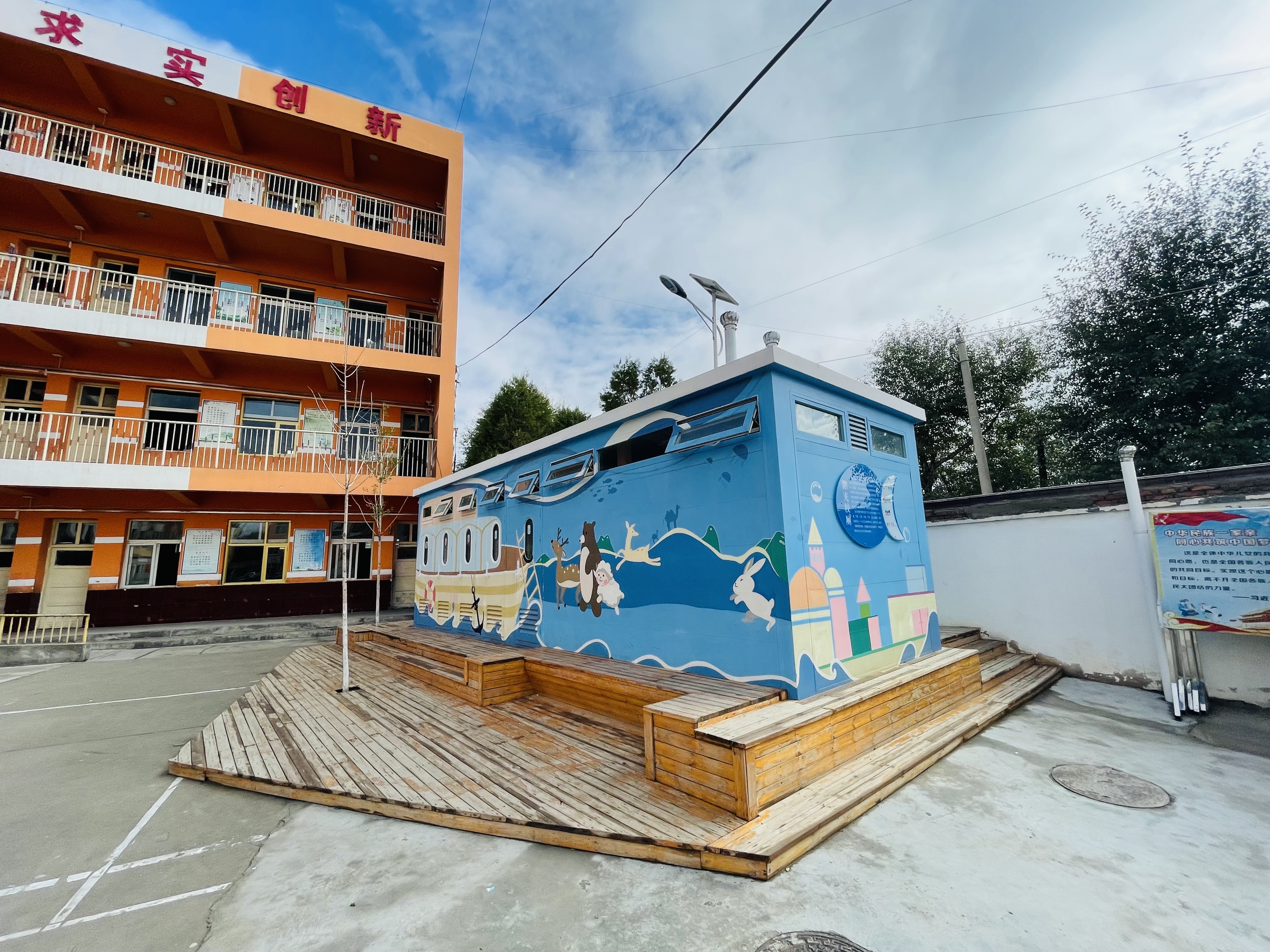 研究显示由于不良卫生状况引起的腹泻、环境性肠病不仅抑制儿童生长发育,甚至对认知、学习能力产生影响。在调研中我们发现相比于宽敞明亮的校舍教室,北方农村校园的厕所多数还停留在十几年前的水平——通槽式的旱厕、半开放式的厕间,这些厕所厕间黑臭湿滑不仅使用体验差,还存在诸多安全隐患,孩子们冬天不仅冻屁股还容易滑倒,夏天顶着刺鼻的气味同时忍受着蚊蝇滋扰,同时粪污暴露还增加了校园粪口疾病传播的风险。针对缺少上下水管网的校园,我们团队设计开发了适用于学校的生态厕所系统。